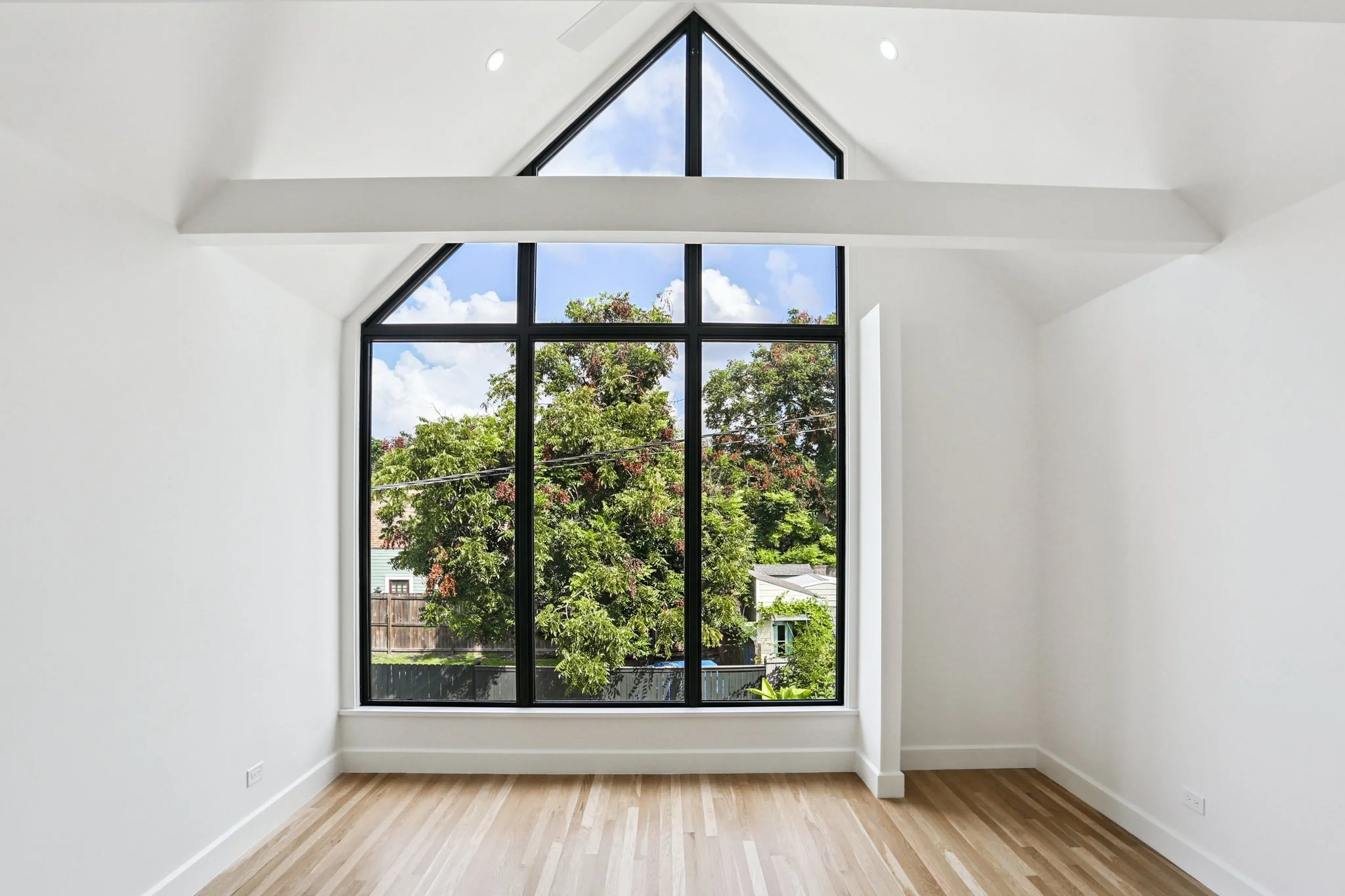Being the only house on the block has its perks, which is why we took advantage and created a large glass window in the primary bedroom.